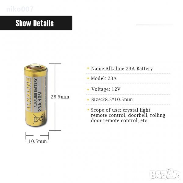 БАТЕРИЯ 23A-12V, 27A-12V за дистанционно-гараж-аларма-играчки-везни, снимка 1 - Аксесоари и консумативи - 31017721 БАТЕРИЯ 23A-12V, 27A-12V за дистанционно-гараж-аларма-играчки-везни, снимка 2 - Аксесоари и консумативи - 31017721 БАТЕРИЯ 23A-12V, 27A-12V за дистанционно-гараж-аларма-играчки-везни, снимка 3 - Аксесоари и консумативи - 31017721 БАТЕРИЯ 23A-12V, 27A-12V за дистанционно-гараж-аларма-играчки-везни, снимка 4 - Аксесоари и консумативи - 31017721 БАТЕРИЯ 23A-12V, 27A-12V за дистанционно-гараж-аларма-играчки-везни, снимка 5 - Аксесоари и консумативи - 31017721 БАТЕРИЯ 23A-12V, 27A-12V за дистанционно-гараж-аларма-играчки-везни, снимка 6 - Аксесоари и консумативи - 31017721 БАТЕРИЯ 23A-12V, 27A-12V за дистанционно-гараж-аларма-играчки-везни, снимка 7 - Аксесоари и консумативи - 31017721 1/7