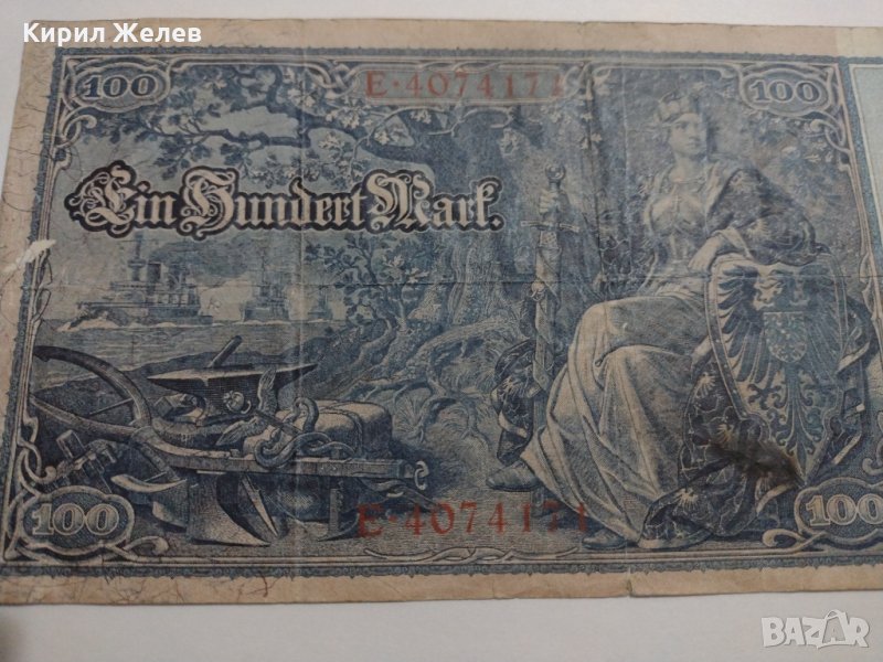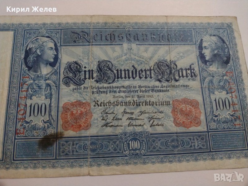 Райх банкнота - Германия - 100 марки / 1910 година рядка Имперска банкнота с червен печат- 17948 → Обява 31019834