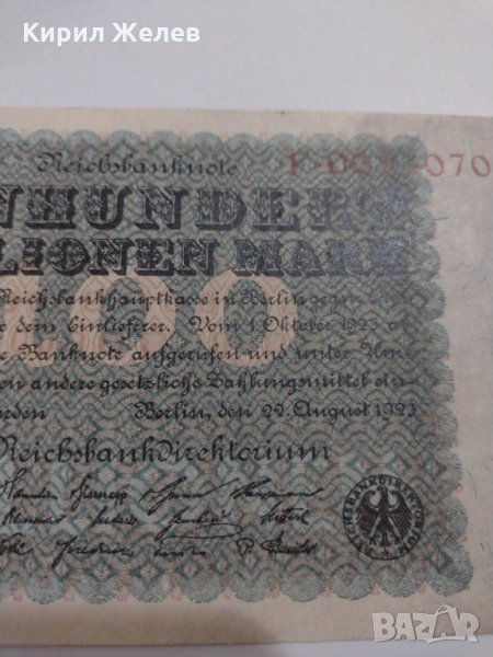Райх банкнота - Германия - 100 Милиона марки / 1923 година - 17984 → Обява 31020390