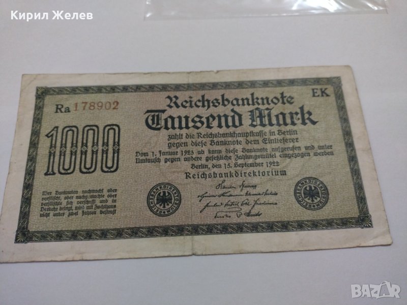 Райх банкнота - Германия - 1000 марки / 1922 година - 17901 → Обява 31020407