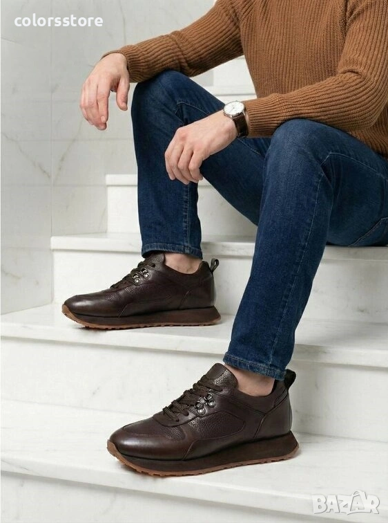 Мъжки спортни обувки - кафява ЕСТЕСТВЕНА кожа - 1193-3