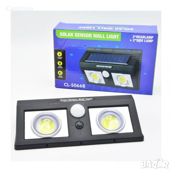 Автоматична соларна лампа за стена-зарежда се от дневна светлина, модел CL-5066B, разполага с 50 LED COB светодиода с мощност 30 W, тeзи светодиоди са разположени зад една голяма мощна лупа.