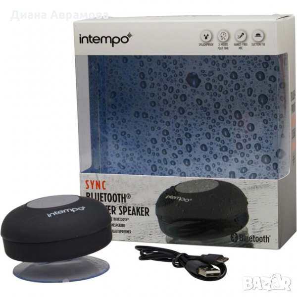 Безжичен портативен Bluetooth високоговорител за душ intempo с вграден микрофон за свободни ръце/провеждане на телефонен разговор/.