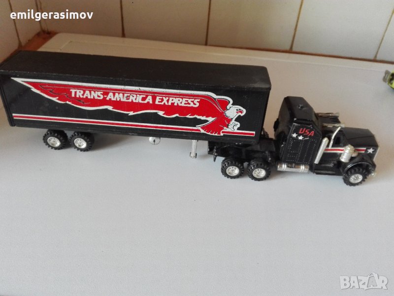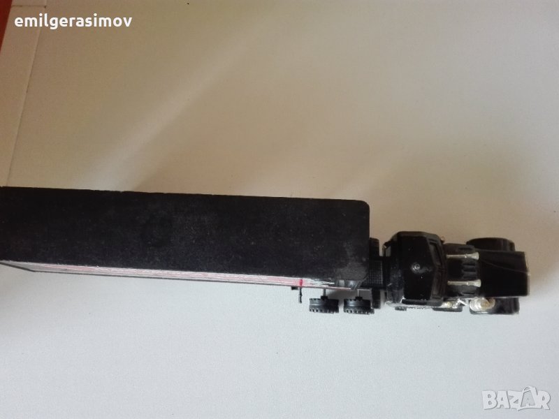 1. Метален камион с пластмасово ремарке.Много добро състояние Дължина 30 см. Цена 10 евро.