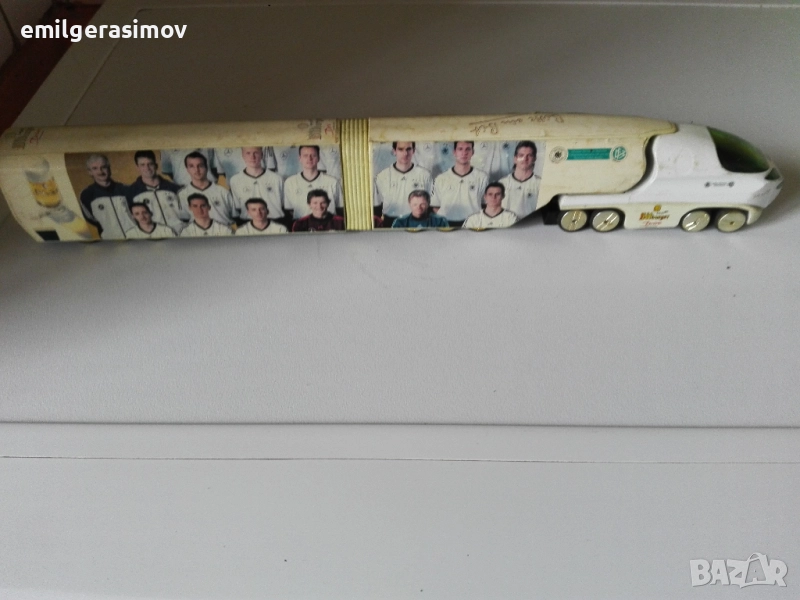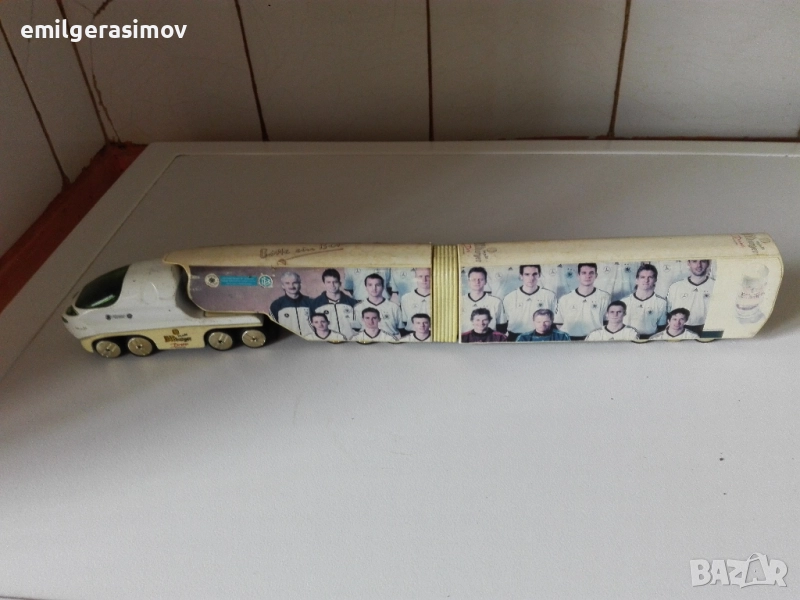 2. Камионче с националния отбор на Германия на Евро 96. Дължина 37 см. Влекача е метален. Цена 5 евро.