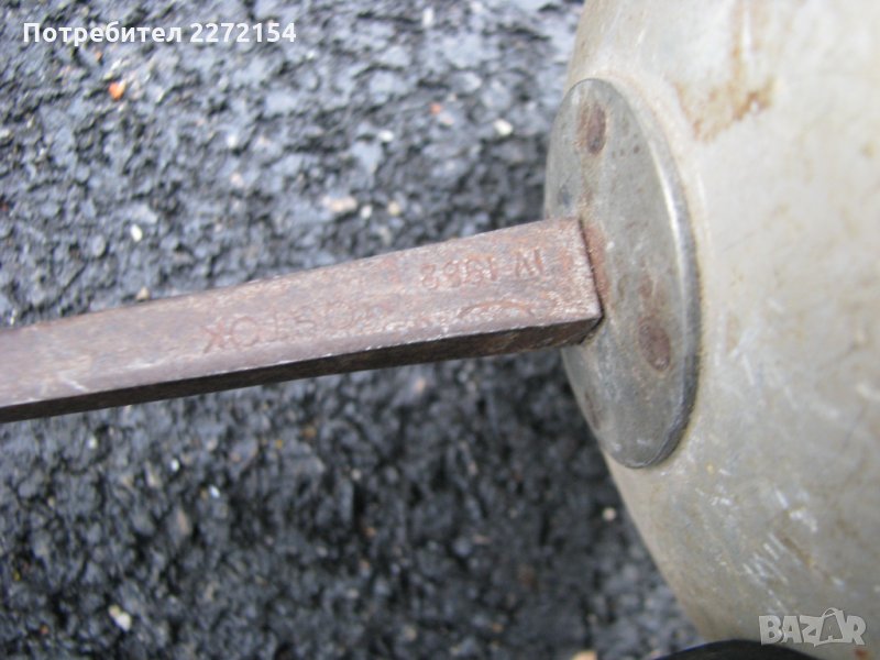 Обща дължина 110см.Работи на ток или без,по цялото острие има вградена медна нишка.Отпред има тъп накрайник с болтче,което като се развие става остра(бойна) а така е учебна.Маркирана ROSTOK 1962 но незнам това година на производство ли е или сериен номер.Стегната без луфт.