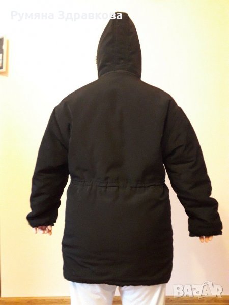 Якето е зимно и много топли. Качулката е с цип и се сваля. Размерът не знам точно какъв е, но според мен е XL или 2XL. Ако има заинтересовани, ще го измеря. Запазено е, но е за смяна на цип, също така може да се носи и само със закопчани копчета. В талията може да се събира или отпуска, има си връзка.