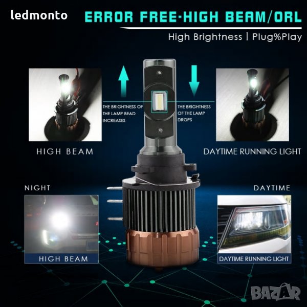 .Включена опаковка:2 броя LED крушки H15.