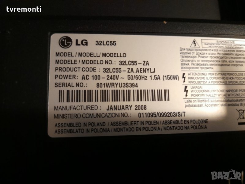 MAIN AV EAX35231404(0) борда е гарантирано работещ Демонтиран от уред Телевизор LG 32LC55 със счупен дисплей LC320WX6 тесвана от нашия техник