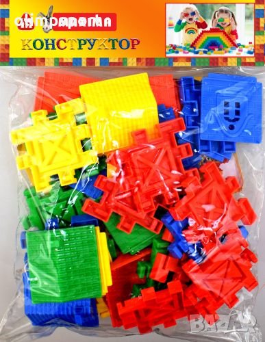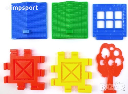 Конструктор къщички 500 г ел. в плик 270379 нов Комплектът съдържа цветни елементи - стени, покриви, врати, прозорци, оградки за сглобяване на различни по големина и вид къщички. Подходящ за деца от детска градина, предучилищна и началните класове на училищно образование. Материал: пластмаса. Тегло: 500г. За деца над 3 години.
