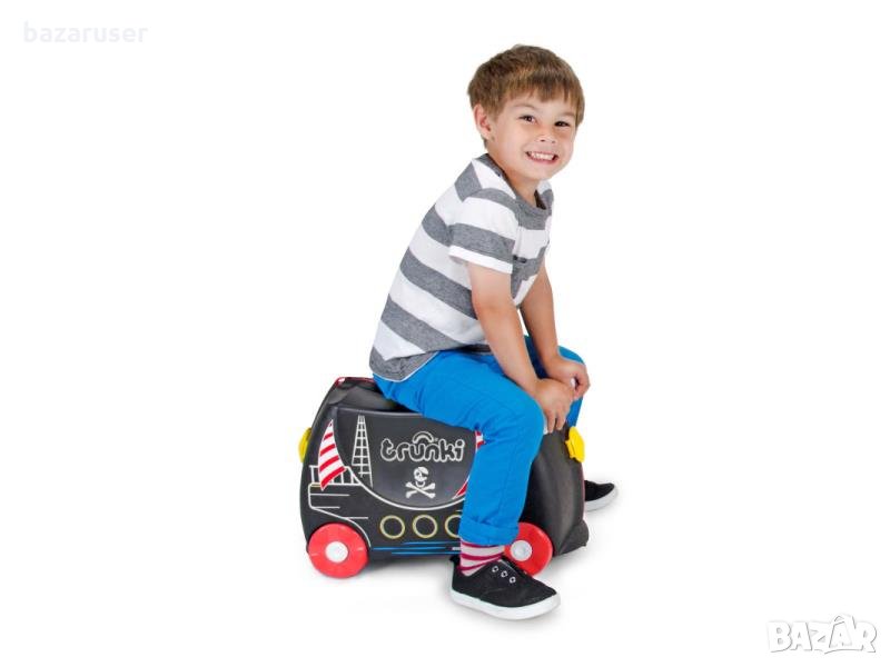 Куфарът Trunki е идеален за разходки, почивки и със самолет. Мястото за съхранение вътре с обем от около 18 л е достатъчно голямо за играчки, книги, дрехи и др. Вътре в кутията има каишки, които да държат съдържанието и страничен джоб. Отварянето и затварянето на кутията е много лесно, така че дори детето може да се справи сам. Дръжките улесняват носенето в ръката, презрамката също се използва за издърпване на куфара от родител или дете. Той има практична дръжка отпред за каране . Калъфът е изработен от лека и издръжлива пластмаса. Размери: 44 × 22 × 32 см