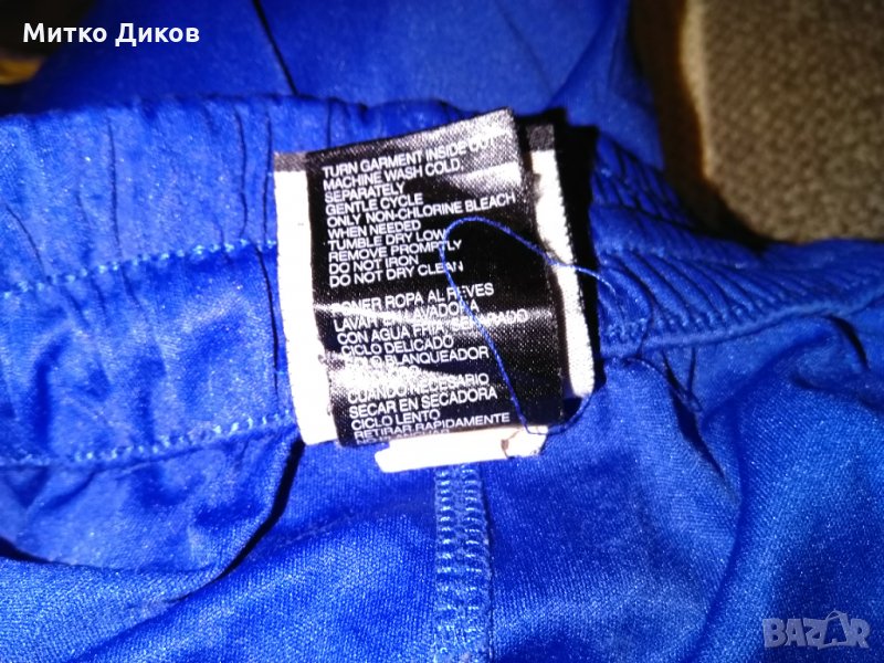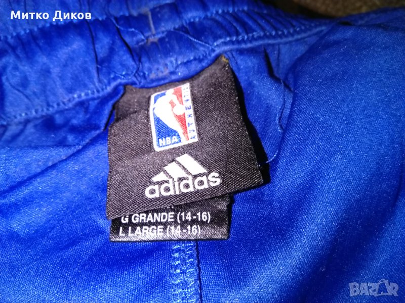 Баскетболни гащета Голден Стейт Уориърс-маркови на Адидас-размер юноши Л или мъже С-отстрани56см и в ханша неразтегнати-32см и разтегнати-46см-в добро състояние-отдолу има на три места зашито-малки дупчици което не се заблязва затова цената е намалена-изпращам по еконт-по спиди