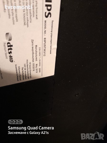 Демонтирани от телевизор Philips 65PUS6373/12 от счупен панел TPT650UA-QVN06.U Rev S301W цената е за целия панел