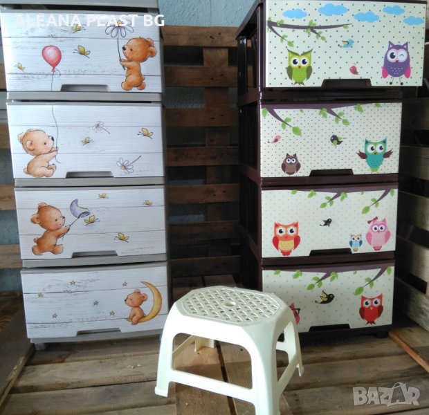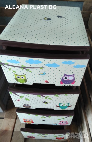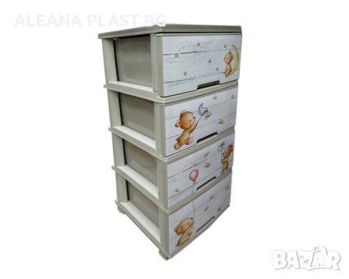 Пластмасов шкаф с четири чекмеджета с декор