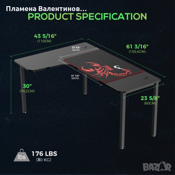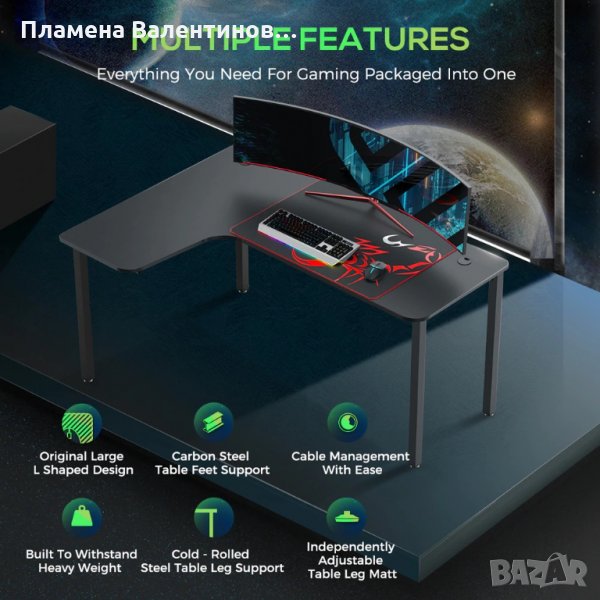 Бюрото разполага с голяма повърхност, позволяваща поместването на двоен монитор, мишка, клавиатура. Също така има достатъчно място за вашия лаптоп и други принадлежности.