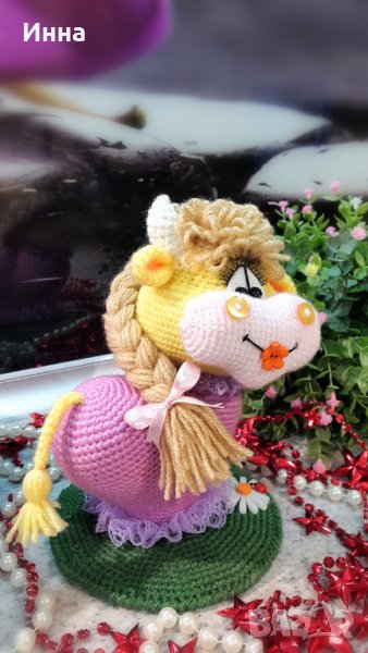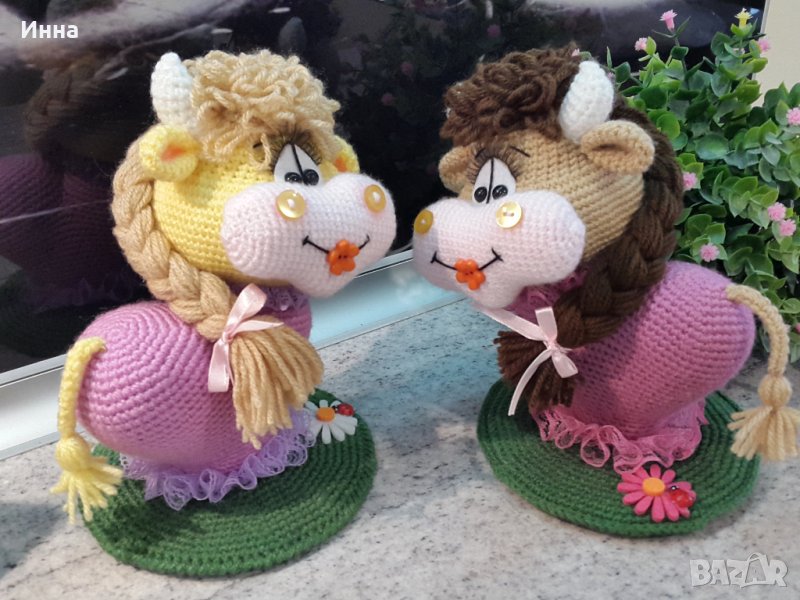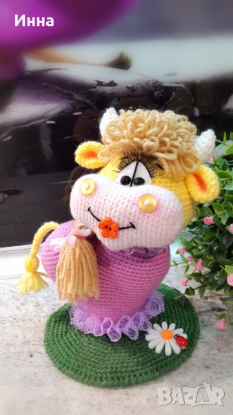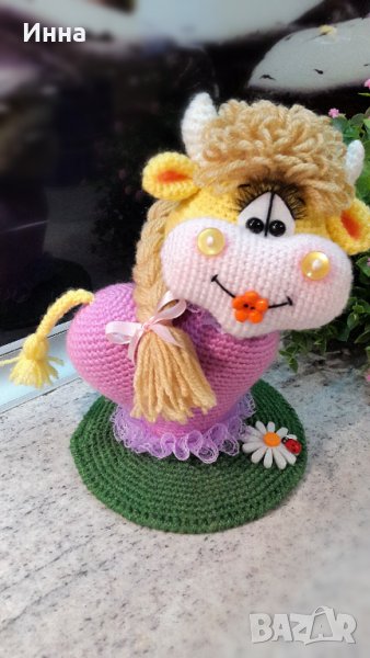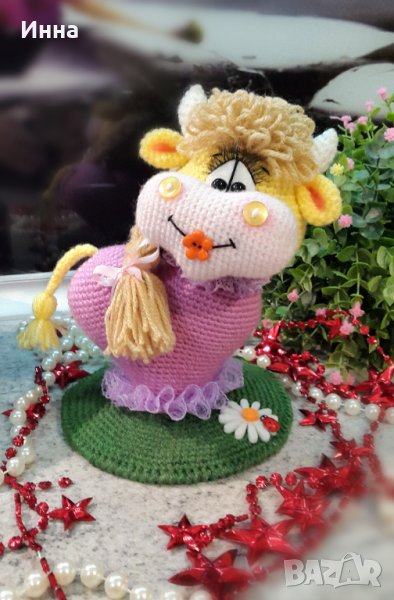 "Влюбена кравичка", приятелка на символа 2021г.,Плетена играчка, Ръчно изработена, Перфектен подарък → Обява 31067927