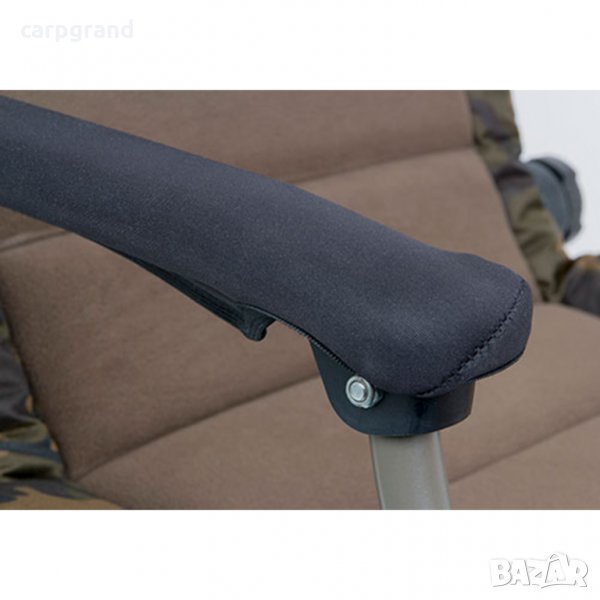 Цялостната концепция на стола Ви гарантира, че той ще заема формите на тялото ви, за да ви предостави перфектен комфорт.Облегалката е напълно регулируема чрез здрави винтове от двете ѝ страни. И четирите крака на стола са напълно регулируеми, като това Ви позволява перфектно позициониране на всеки терен. Краката завършват с широки лапи, които не позволяват стола да потъне в мека или кална почва.Ширината на седалката е 59см, а височината на облегалката е 57см, височина на седалката от земята: 39-47см