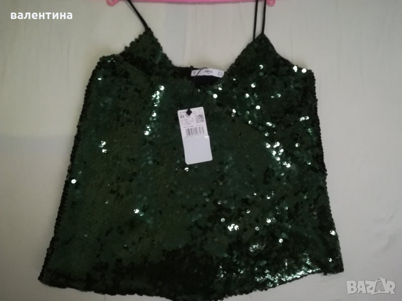 Дамски топ Mango с пайети - в зелено и черно → Обява 31073438