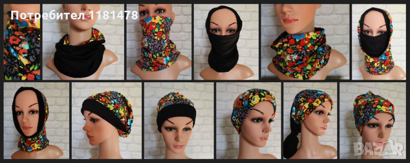 Многофункционални бандани тип Buff, ръчно изработени. Могат да се носят като шал, шапка, маска, лента за глава/ръка, боне, качулка или просто да внесат цвят и разнообразие в ежедневното облекло. Банданите са добра алтернатива на противогрипните маски и модерен начин да спазваме мерките за безопастност. Произведени са от качествени еластични материи, които не дразнят кожата и прилепват добре на главата. Налични още видове освен показаните. Доставка с куриер.