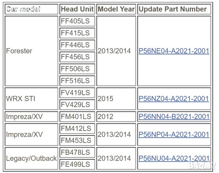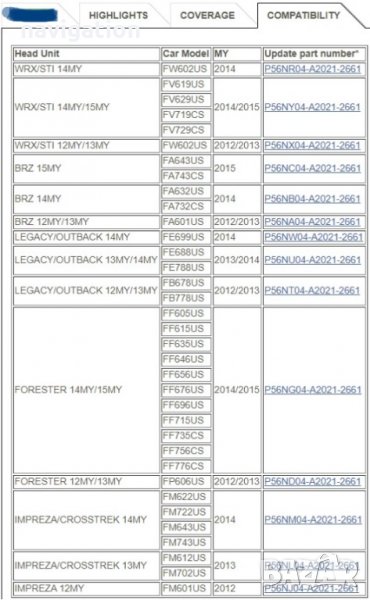 Π‘ΡΠ²ΠΌΠ΅ΡΡΠΈΠΌΠΈ Π°Π²ΡΠΎΠΌΠΎΠ±ΠΈΠ»ΠΈ Subaru/Π‘ΡΠ±Π°ΡΡ ΠΏΠΎ Π½ΠΎΠΌΠ΅Ρ Π½Π° ΡΡΡΡΠΎΠΉΡΡΠ²ΠΎ ( Head Unit ):
