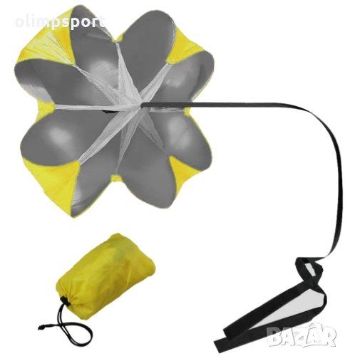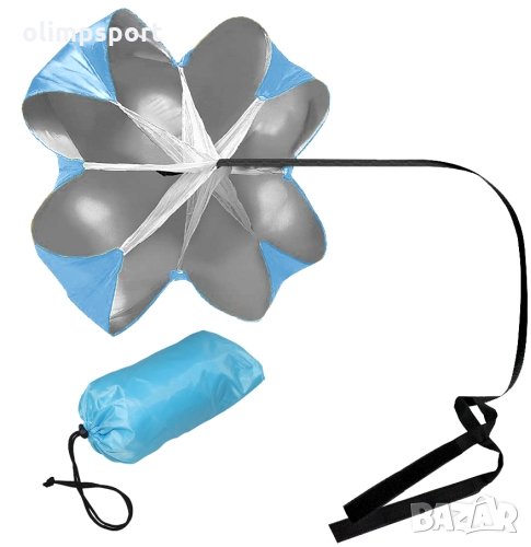 Тренировъчен парашут нов създава допълнително съпротивление на бягащия. Продуктът е подходящ за постигане на по-добри резултати в бягането, независимо какъв спорт се практикува. С негова помощ се увеличава скоростта, ускорението и издръжливостта при спринт и други бегови упражнения. Подобрява силата и издръжливостта на краката. Комплектът включва чанта за съхранение и пренасяне.Тегло с опаковката: 250г. Диаметър на парашута - 120 см. Регулируем колан с катарама. различни цветове
