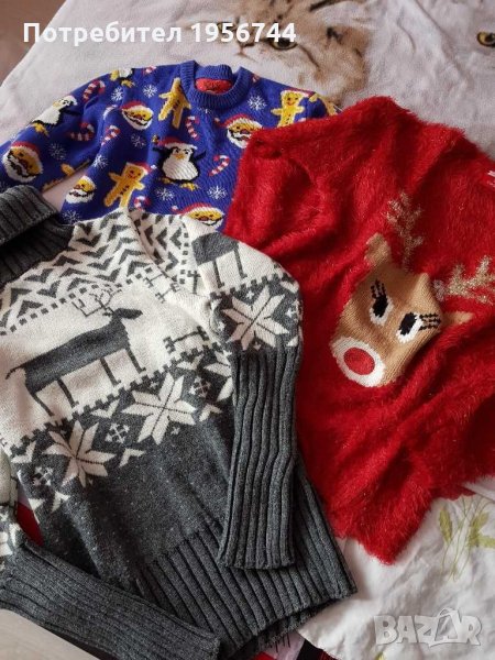 Коледни пуловери#S/M#интересни мотиви#мекички#топли#обличани броени пъти#син, червен, сив#цената е за брой!
