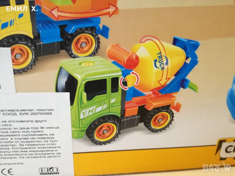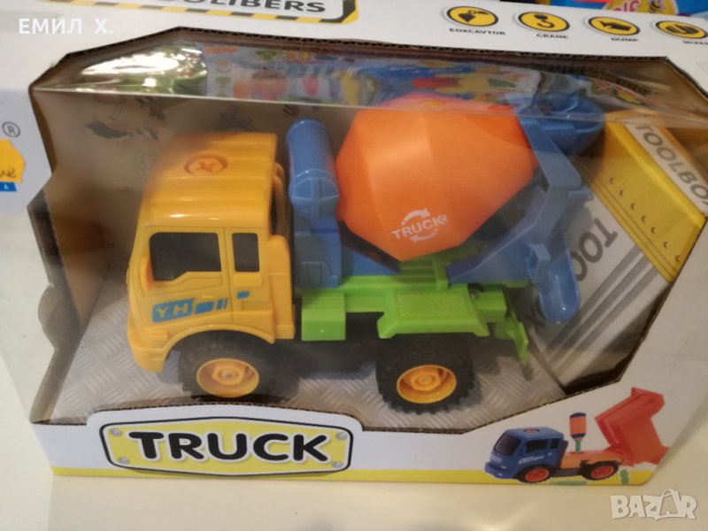 Играчката може да се играе в сглобено състояние,може и да се разглобява и сглобява .Към играчката има отвертка с които вашето дете ще може да разглоби и сглоби бетоновоза.