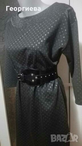 Рокля в тъмно сиво на сребристи точки 👗🍀36 - 38 р-р👗🍀арт.480