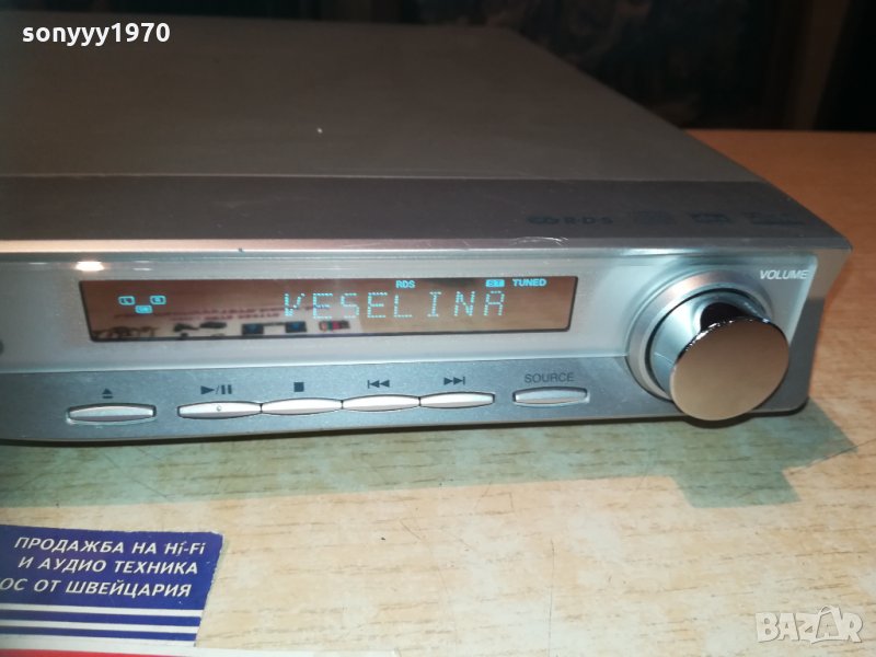 свири прекрасно работи идеално има здрав усилвател с изходи за 6 колони и здрав тунер-диска не отваря вероятно за ремък-има аудио вход-пращаме със спиди или еконт с преглед и тест след превод на капаро за куриерската услуга поради зачестили некоректни потребители-поръчки само тук в саита! по телефона и със смс не! краини цени! бартери не правиме! ПАРИ НЕ ВРЪЩАМЕ! всеки ден нови неща-още 2-3 наши обяви тук