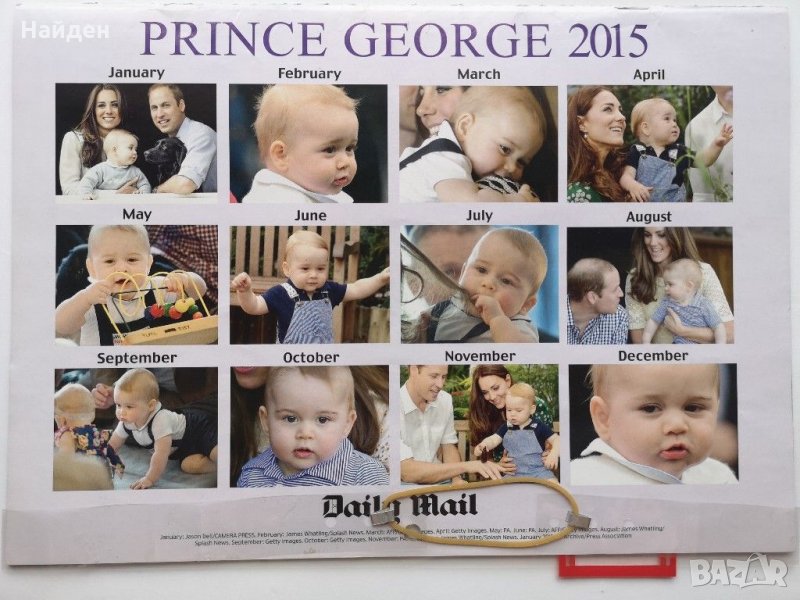 3. Календар е със снимки на принц Джордж - 10 лв.