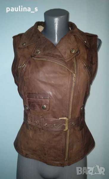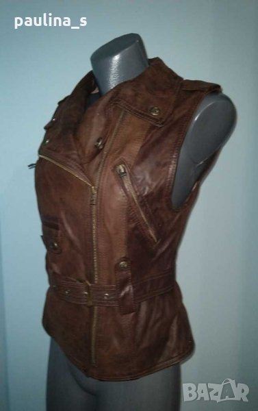 1. Брандов елек с асиметрично закопчаване от естествен набук. Набукът е от телешки бокс, здрав, моделът е леко втален, а набукът еластичен. Няма дефекти или забележки. Цената е символична за такава дреха.