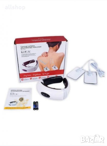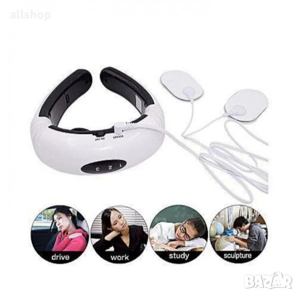 Многофункционален електрически импулсен масажор за шията, както и за други части на тялото, е направен в стилен 3D дизайн и осигурява плътен контакт с кожата по време на масаж. Ефективно елиминира мускулното напрежение, симптомите на болка, осигурявайки изразен релаксиращ ефект поради излагане на честотата на импулсите. Той облекчава симптомите и предотвратява развитието на костна хиперплазия, подобрява качеството и дълбочината на съня, помага при притиснати нерви, премахва хематомите и възпалението. Устройството симулира китайския масаж на меридианите, стимулира циркулацията на кръвта и лимфата, а също така създава лечебни ефекти благодарение на вградените магнити. Импулсният масажор има 6 режима на действие и 16 стъпки за регулиране на интензивността на действие.