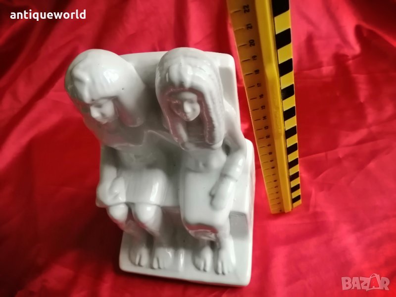 Уникална Масивна Порцеланова Много Красива Италианска Статуя Египетски Фараон с Жена Му на BELLINII. Тегло 2 кг. Състоянието е видно.