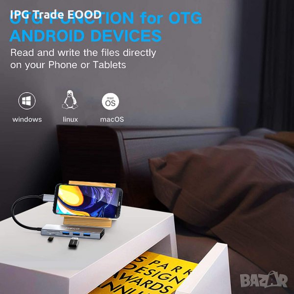 - 6 в 1 - 3 x USB 3.0 портове, и 1 4 K 30 Hz HDMI порт, 1 четец на SD карти и 1 четец на TF карти
