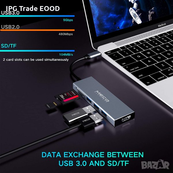 ПРОМО! 6 в 1 USB C Hub - хъб 3 х USB 3.0 + 4K HDMI + четец на карти