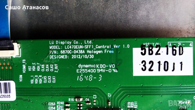 T-Con Board: LC470EUN-SFF1_Control_Ver 1.0 / 6870C-0438A Halogen Free ( 6871L-3210J ) - 40лв.