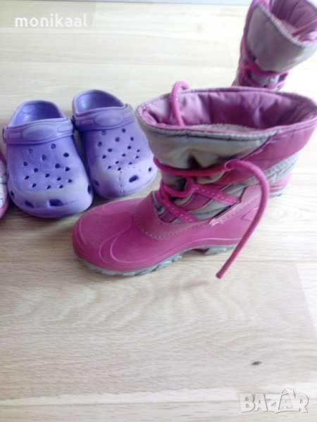 Уникални топли ботушки и пантофи. Ботушите са 27номер - топли и не пропускат, пантофите са на Бефадо и са 29-ти номер. Пантофите са 4лв, ботушките са 13лв, а кроксчетата са подарък. За всичко цената е 15лв.