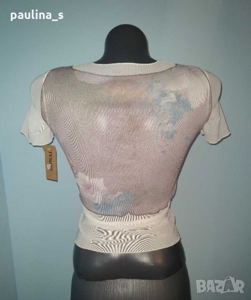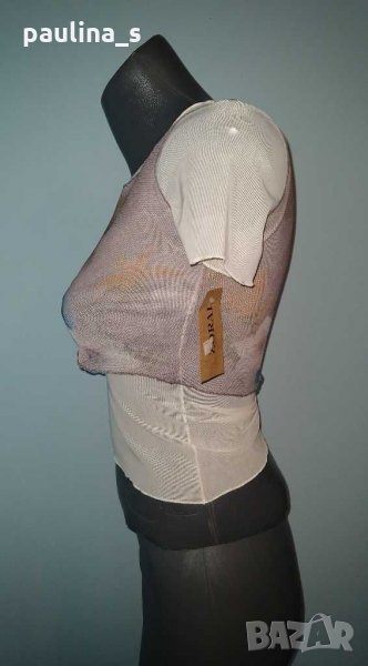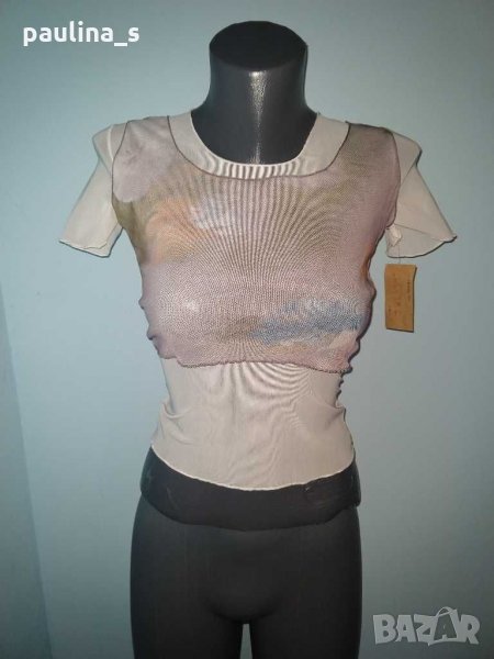 Една бройка. Нова еластична блуза в два пласта. Топът е в цвят Пепел от рози с флорален принт. Материята е много еластична и покрива няколко размера.