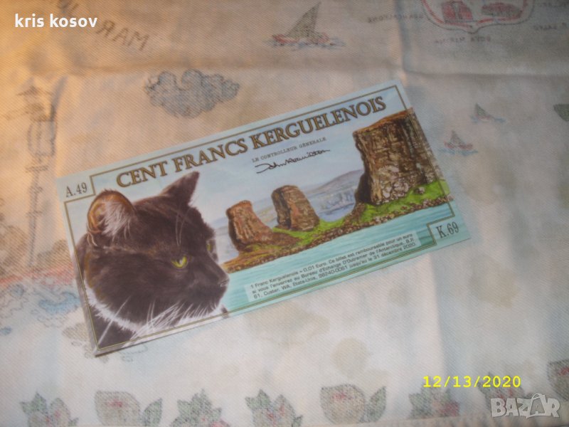 Кергелен 100 франка - Образец 2010 г, Остров Кергелен 100 франка 2010 Образец-Остров Кергелен е притежание на Франция в сближаването на Антарктика. Като такъв той обикновено е бурен и особено много ветровит. Този вятър създава благоприятни условия за кръстосано опрашване на зелето Kerguelen, едно от малкото местни растения, които растат в суровия климат. Островът е известен и със своята дива популация на котки, създадена, когато някои котки са били оставяни там от преминаващи моряци. Инбридингът е накарал тези котки да се развиват донякъде безумно. Обитаването на островите сега е концентрирано около Порт дьо Франс и неговите научноизследователски съоръжения. Американската домашна котка Гилбърт е изобразена заедно с основните селищни и крайбрежни скални образувания.Тази бележка е абсолютно задължителна за вашата колекция, носеща портрета на Yves Joseph De Kerguelen-Tremaker, село и котка, голям камък на гърба. Стойността на тази бележка ще се увеличи, след като всички те изчезнат. Технически френски острови,KERGUELEN Archipelagos 100 Francs New Edition 2010 UNC Polymer SPECIMEN банкнота с 00000 серийни номера от удивителния принтер за банкноти в Антарктида.