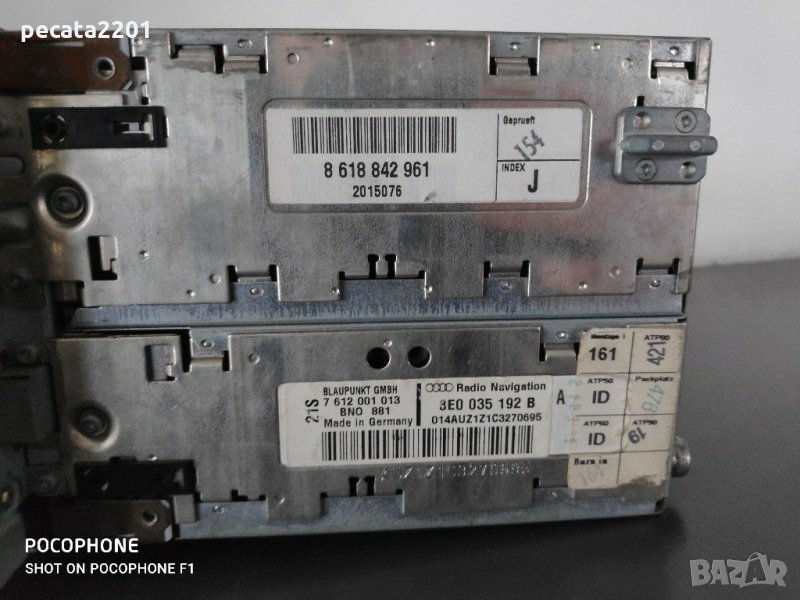 Продавам - оригинална навигация за фолксваген/ауди (VW/AUDI). Навигацията работи без проблем,има лош външен вид, но си работи без проблем. На снимките се виждат, дисплея не е счупен, само е надраскан. Оригиналния номер е 8E0035192B. Цена - 145 лв.