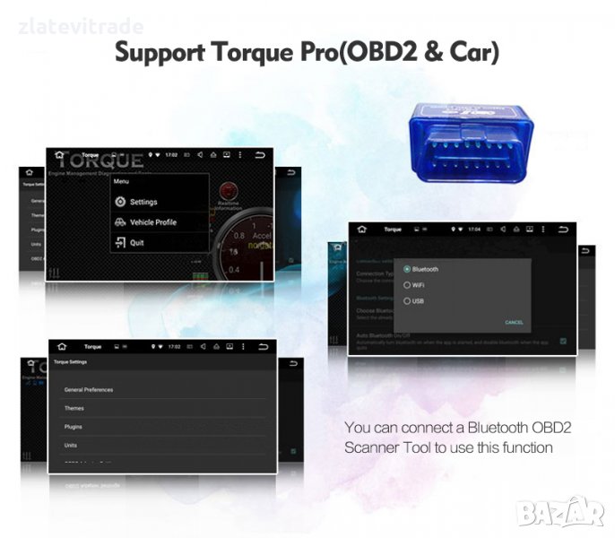 - Възможност за OBD2 диагностика на автомобила - включена пълна версия на програма за OBD2 диагностика (OBD2 модул не е включен в комплекта)