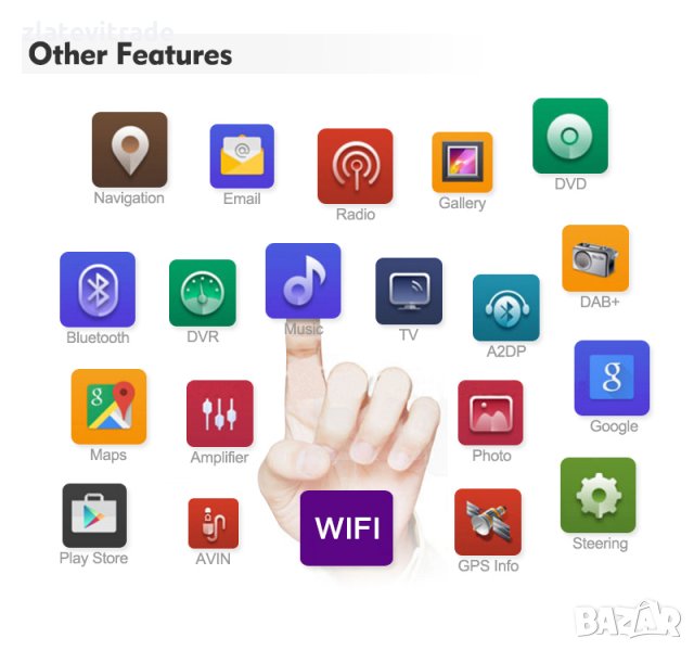 - Възможност за свободно инсталиране на приложения от Google Play - получавате вграден в колата таблет