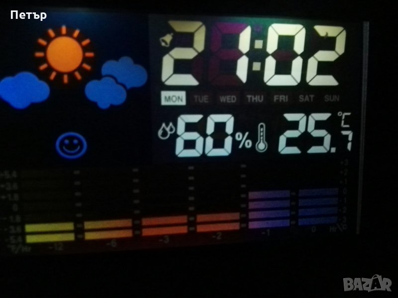 Продавам НОВ цифров настолен часовник - показва часа 12/24ч, датата, прогноза за времето, има будилник, влагометър, термометър С и F, календар. Проектор на часа, датата на тавана или стена (разстояние от 1м до 5м и ъгъл на завъртане на проектора 180градуса).