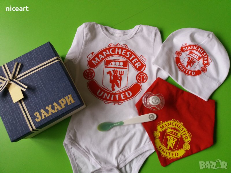 -При нас може да поръчате боди с емблема на любимия ви футболен клуб ,както и лигавник,шапка,биберон и още много артикули с емблеми