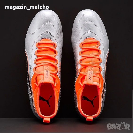 Насладете се на футбола с калеври Puma. Използвайте модел One 3 на стадиона или игрище с естествена трева. Тези футболни обувки предлагат изключително сцепление, благодарение на формованите бутони, разположени стратегически, за да предложат бързо движение по терените. Омекотената стелка предлага удобство, а закрепването с връзки стабилност и комфорт.