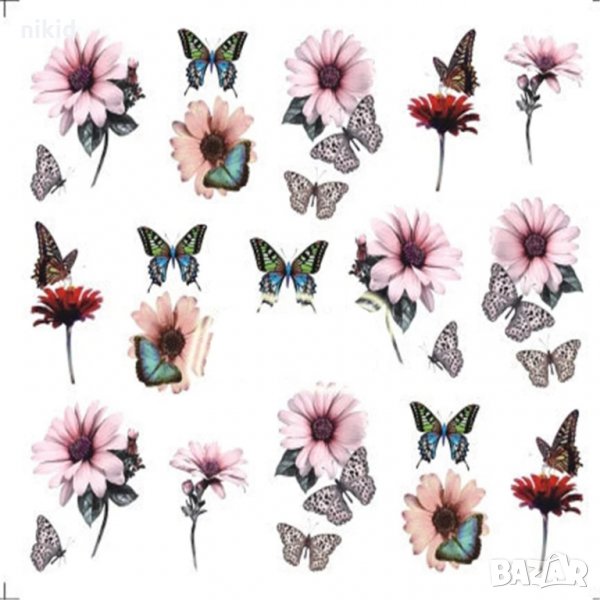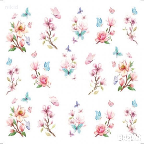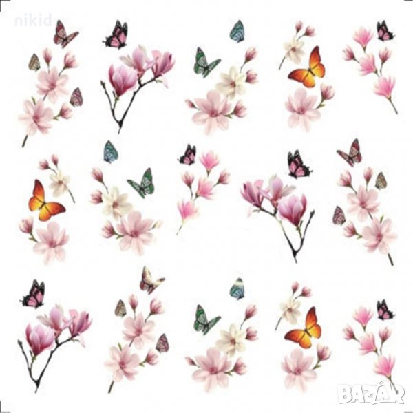 серия 1503-1510 цветя пеперуди Кула 12 в 1 лист татос слайдер ваденки водни стикери за нокти маникюр → Обява 31123990