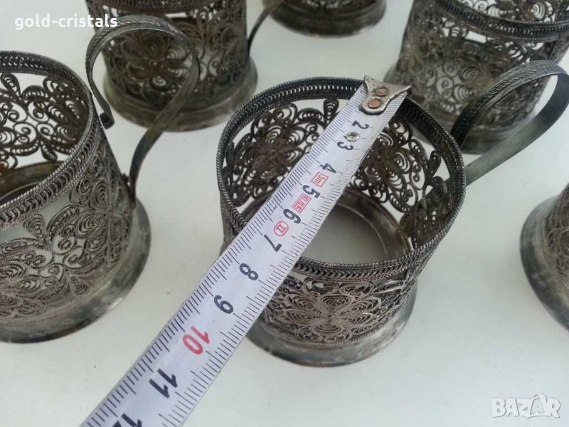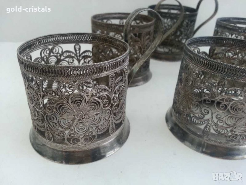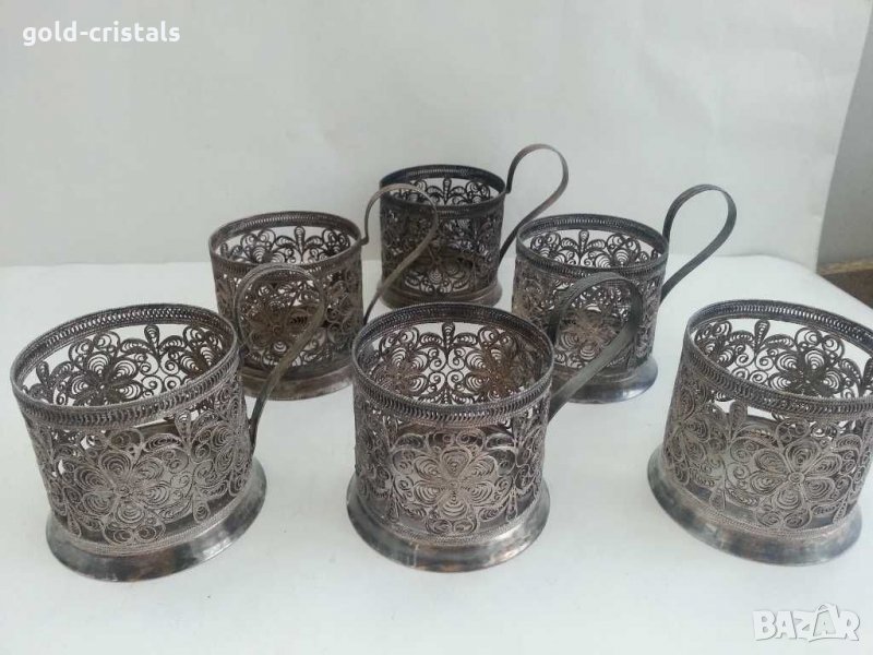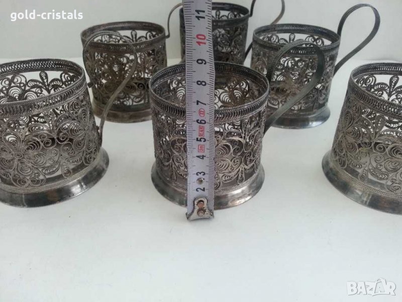 Руски стакани подстакани посребрени ювелирна изработка филигран 6бр-600лв мелхиор сервиз комплект сет лот ретро арт декор винтидж колекция стари старинни антикварни предмети обзавеждане за дома и семейството подходящи за подарък за ценители и колекционери термо чаши по избор 6бр -85лв