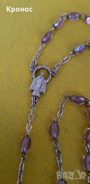 Сребърна броеница, колие "Rosario" с мъниста от естествен Аметист (лилав кристал). Произведена в Италия.