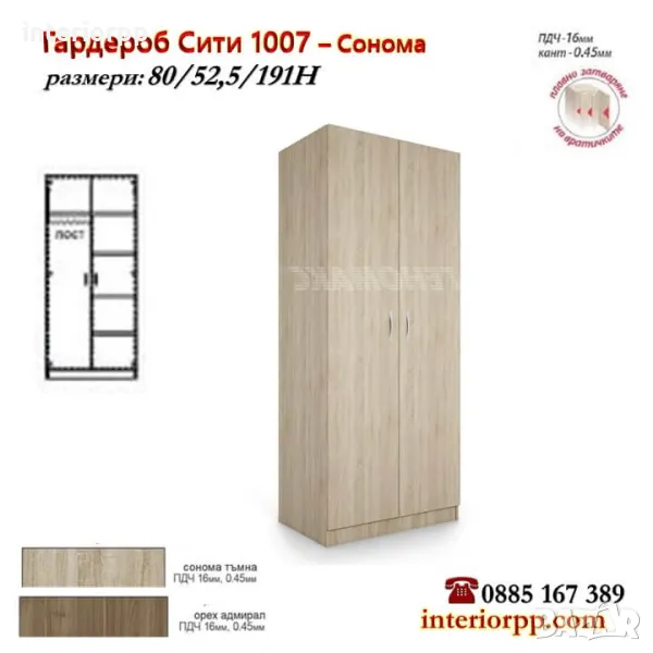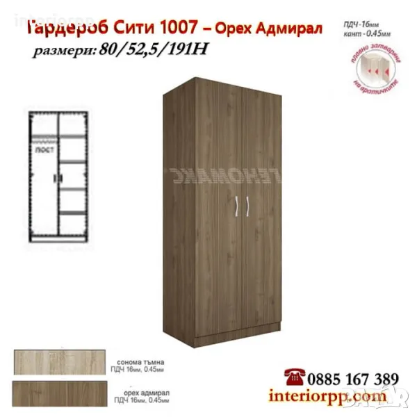 Двукрилен гардероб Сити 1007 с ширина 80 см