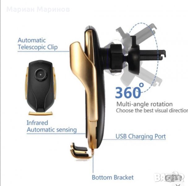 Безжично зарядно устройство. Автомoбилен държач за телефон със умен сензор за отваряне и затваряне!